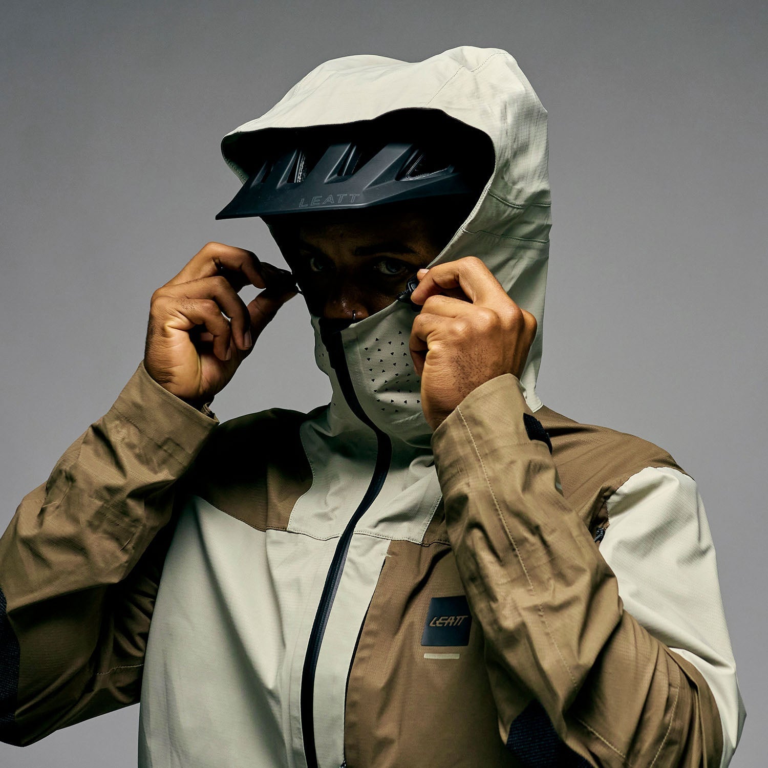 - Pico de capucha rígido y cobertura hasta la barbilla para máxima protección.