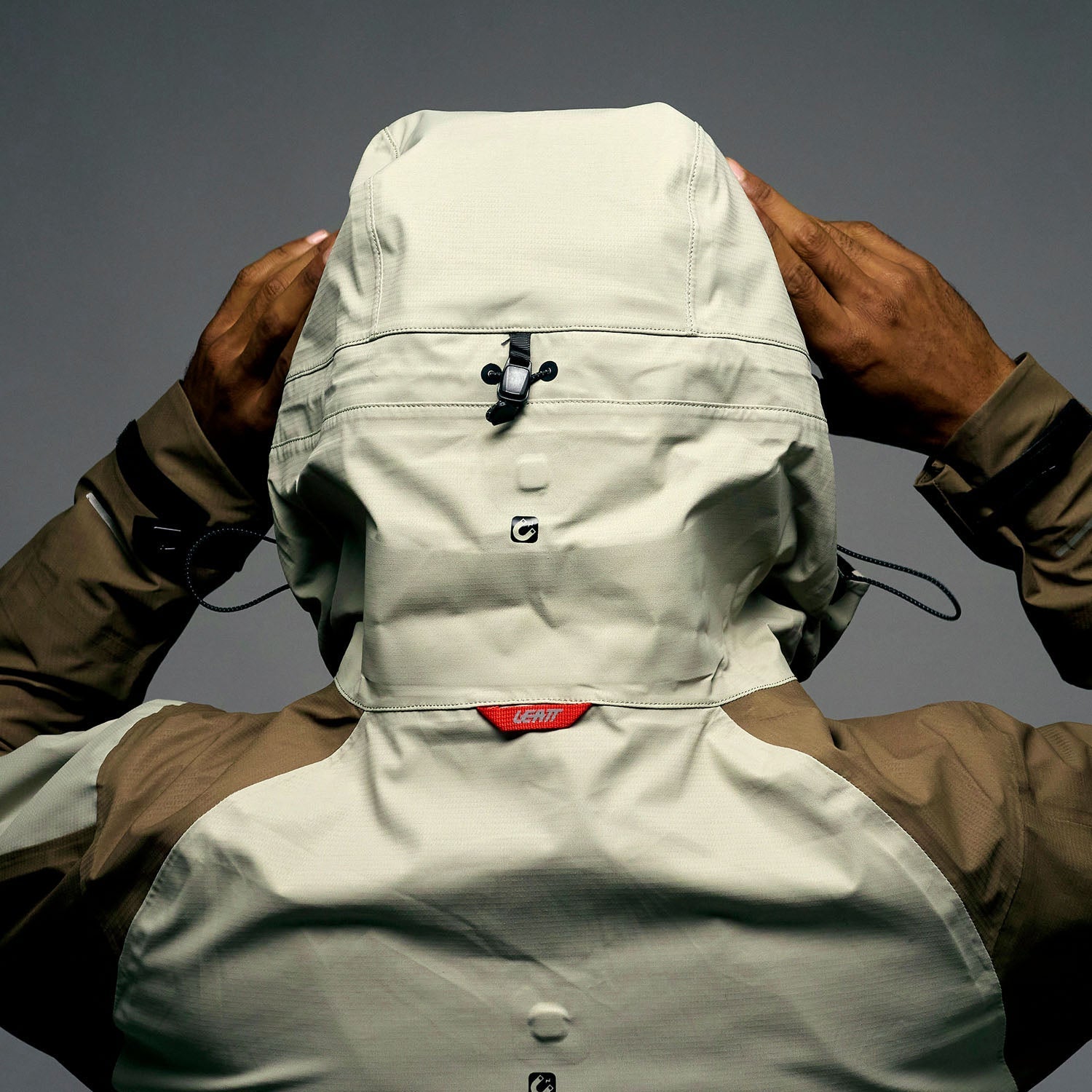 - Puños tipo storm cuff de seda impermeable.