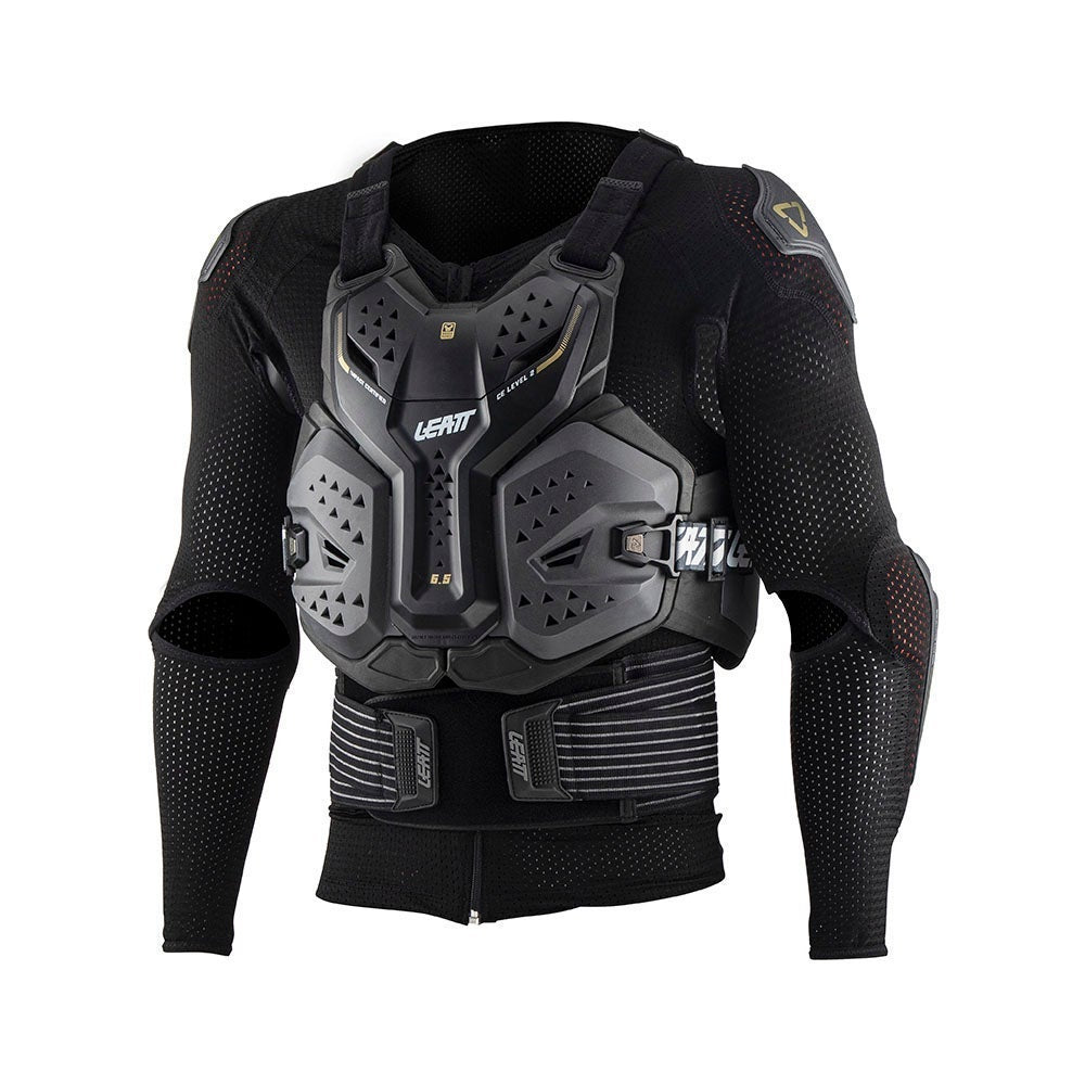 El Peto Leatt 6.5 es una armadura de protección superior para quienes buscan el máximo nivel de seguridad en deportes extremos. Este protector modular está diseñado con una carcasa dura y espuma de impacto suave 3DF AirFit que ofrece un excelente flujo de aire y ventilación. Su sistema modular permite utilizar un traje de compresión con protección en codos y hombros, complementado con una coraza dura para pecho y espalda que proporciona protección lateral adicional.
